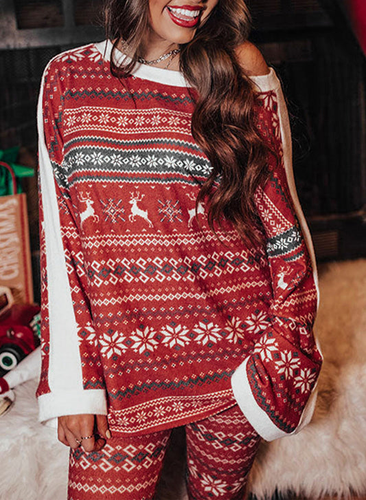 Loungewear Suit Women Autumn Winter Christmas Elk Printing Long-Sleeved Pajamas Loose Home Wear Women